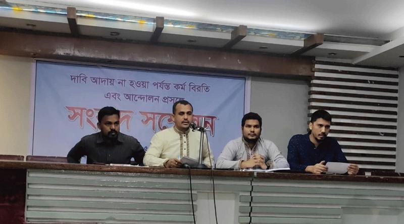 লিখিত বক্তব্যে তারা বলেন, ‘বিনা কারণে টার্মিনেট করা কর্মকর্তাদের স্বপদে পুনর্বহাল, প্রহসনমূলক পরীক্ষা বয়কটের জন্যে আমাদের কর্মকর্তাদের যে পানিশমেন্ট ট্রান্সফার দেওয়া হচ্ছে তা অনতিবিলম্বে বন্ধ করা, গত সরকারের আমলে প্রদত্ত অবৈধ প্রমোশনের তদন্ত, বৈষম্যহীন ও রাজনীতিমুক্ত কর্মপরিবেশ সৃষ্টি, শর্ত আরোপ করে সকল প্রকার অ্যাসেসমেন্ট টেস্ট বন্ধ এবং চট্টগ্রামের কর্মকর্তাদের ওপর চালানো মানসিক ও শারীরিক নির্যাতনের সুষ্ঠু তদন্ত ও দোষীদের শাস্তি এবং বৃহত্তর চট্টগ্রামের সব কর্মকর্তাকে পুনরায় কর্মস্থলে ফিরিয়ে আনতে এক সপ্তাহেরও বেশি সময় ধরে আমরা দাবি জানিয়ে আসছি।