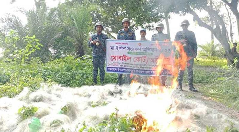 নিষেধাজ্ঞা কার্যকর করতে খুলনায় ৫০ হাজার মিটার কারেন্ট জাল পুড়িয়ে ধ্বংস