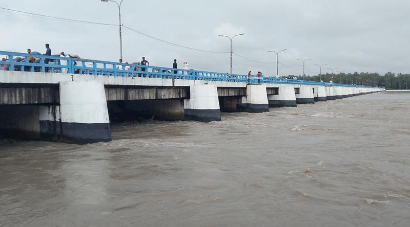 রোববার (৫ অক্টোবর) রাত ১০টার দিকে তিস্তা ব্যারাজের ডালিয়া পয়েন্টে নদীর পানি রেকর্ড করা হয় ৫২ দশমিক ৪৫ সেন্টিমিটার, যা বিপদসীমার ৩০ সেন্টিমিটার ওপরে। পানির চাপ বেড়ে যাওয়ায় তিস্তা ব্যারাজের সব ৪৪টি জলকপাট খুলে দিয়েছে পানি উন্নয়ন বোর্ড (পাউবো)।