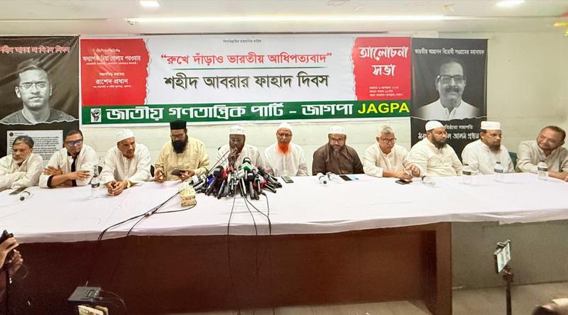 সভাপতির বক্তব্যে জাগপার সহসভাপতি ও দলীয় মুখপাত্র রাশেদ প্রধান বলেন, আজ থেকে ছয় বছর আগে বুয়েট ছাত্র আবরার ফাহাদ ছাত্রলীগের নির্মম হত্যাকাণ্ডের শিকার হয়েছিল। ভারতের সাথে পতিত শেখ হাসিনার গোলামী চুক্তির বিরুদ্ধে ফেসবুকে স্ট্যাটাস দেওয়া ছিল আবরারের অপরাধ! তার অপরাধ ছিল- তিনি নামাজের জন্য শিক্ষার্থীদের ডাকতেন, ইসলামের পক্ষে ডাকতেন- সেজন্যই শেখ হাসিনার নির্দেশে ভারতকে খুশি করার জন্য আবরারকে হত্যা করা হয়েছিল। আবরার আমাদের শিখিয়ে দিয়ে গেছে, ভারতীয় আধিপত্যবাদের কাছে এ দেশের ছাত্র-জনতা মাথানত করে না।