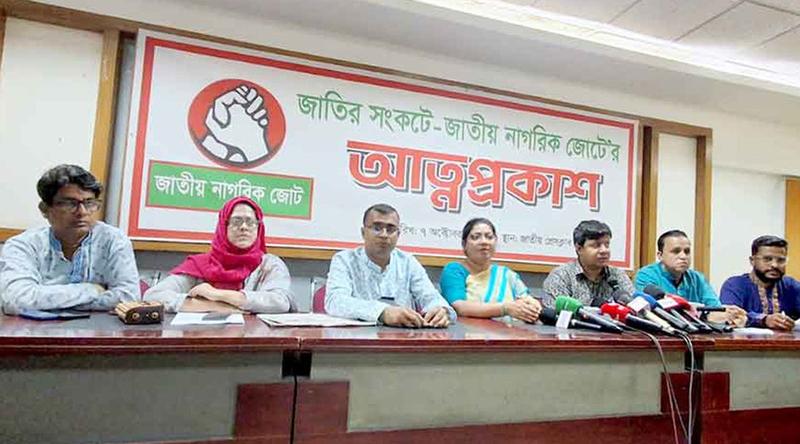 পেশাজীবী, রাজনৈতিক দল ও সামাজিক সংগঠনের প্রতিনিধিদের সমন্বয়ে ‘জাতীয় নাগরিক জোট’ নামে নতুন একটি প্ল্যাটফরম আত্মপ্রকাশ করেছে। এ উপলক্ষে মঙ্গলবার জাতীয় প্রেস ক্লাবের তফাজ্জল হোসেন মানিক মিয়া হলে ‘জাতির সংকটে, জাতীয় নাগরিক জোটের আত্মপ্রকাশ’ শীর্ষক সংবাদ সম্মেলনের আয়োজন করা হয়।