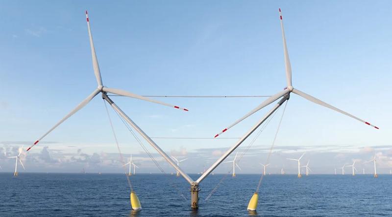 এই মডেলে ভাসমান ভিত্তির ওপর দাঁড়িয়ে থাকা এক প্ল্যাটফর্মে একসঙ্গে দুটি টারবাইন ঘোরে। একটির ব্লেড ঘড়ির কাঁটার দিকে, অন্যটি উল্টো দিকে। এতে বায়ুর চাপ বেড়ে বিদ্যুৎ উৎপাদন ৪ দশমিক ২৯ শতাংশ বেশি হয়।
