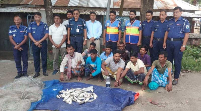 এ ছাড়া তাদের কাছ থেকে জব্দ করা হয়েছে পাঁচ হাজার মিটার কারেন্ট জাল ও ১০ কেজি ইলিশ মাছ।