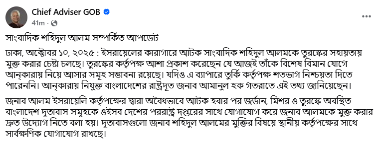 মুক্তি পেয়ে শহিদুল আলমের ফেসবুক পোস্ট Oct 10, 2025
