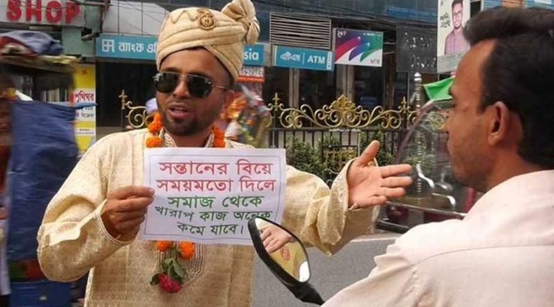 সন্তানকে ঠিক সময়ে বিয়ে দিতে বর সেজে অভিনব প্রতিবাদ এক অবিবাহিত যুবকের!