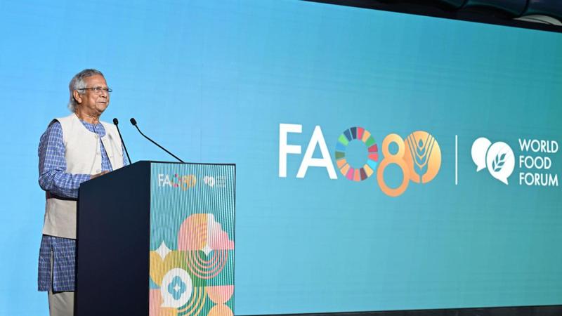 সোমবার (১৩ অক্টোবর) ইতালির রোমে স্থানীয় সময় সন্ধ্যা ৬টায় বিশ্ব খাদ্য ফোরামের সমাবেশে প্রধান বক্তার বক্তৃতায় তিনি এসব কথা বলেন।