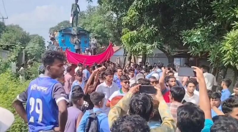 ভৈরবকে জেলা ঘোষণার দাবিতে ট্রেন আটকে বিক্ষোভ