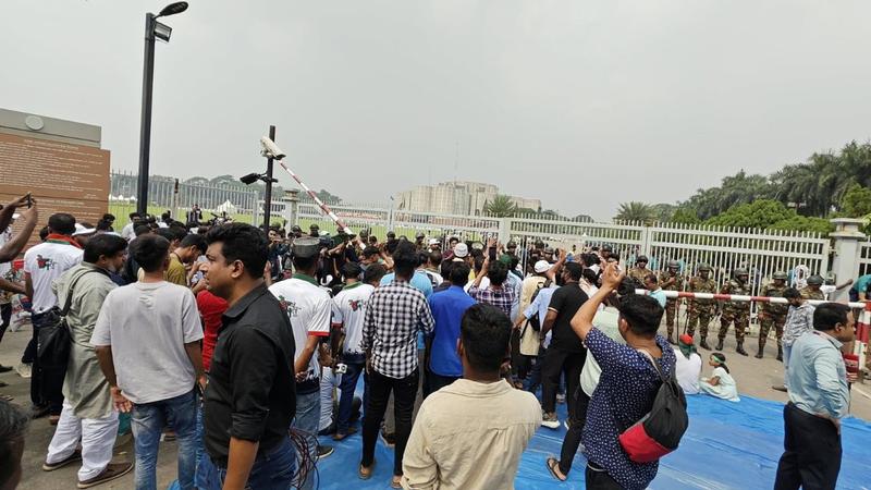 বেলা পৌনে ১২টার দিকে জাতীয় সংসদের ১২ নম্বর গেটের সামনে তাদের পলিথিন বিছিয়ে বসে পড়তে দেখা গেছে। এ সময় তারা ইনকিলাব জিন্দাবাদ বলে স্লোগান দিতে থাকেন।