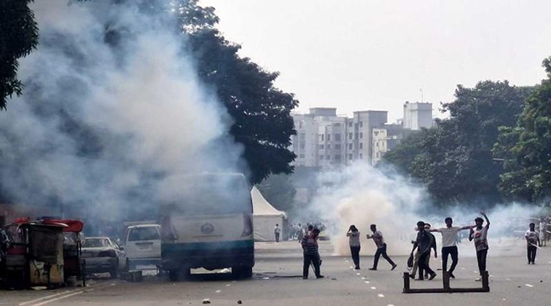 টানা কয়েক দফা সংঘর্ষে পুলিশ সাউন্ড গ্রেনেড ও টিয়ারশেল নিক্ষেপ করে আন্দোলনকারীদের ছত্রভঙ্গ করার চেষ্টা চালায়। অন্যদিকে, আন্দোলনকারীরা সড়কে আগুন ধরিয়ে ইট-পাটকেল নিক্ষেপ করে বিক্ষোভ চালিয়ে যায়। এ সময় পুলিশের কয়েকটি গাড়ি ভাঙচুরের ঘটনাও ঘটে। সংঘর্ষে কয়েকজন আহত হওয়ার খবর পাওয়া গেছে।