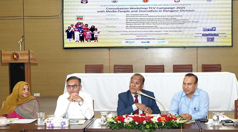 জাতীয় গণমাধ্যম ইনস্টিটিউটের আয়োজনে ও ইউনিসেফের সহযোগিতায় রংপুর বিভাগীয় কমিশনারের কার্যালয়ের সেমিনার কক্ষে অনুষ্ঠিত হয় এ কর্মশালা। এতে সভাপতিত্ব করেন জাতীয় গণমাধ্যম ইনস্টিটিউটের মহাপরিচালক মুহাম্মদ হিরুজ্জামান।