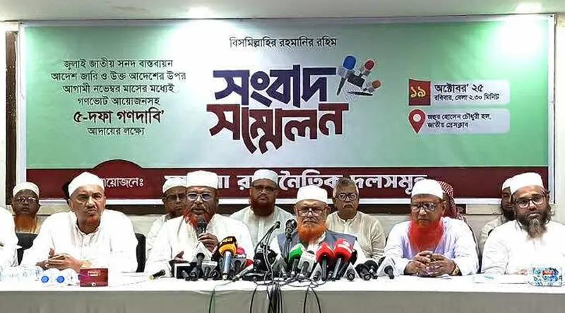 ৫ দফা দাবিসমূহ: ১। জুলাই জাতীয় সনদ বাস্তবায়ন আদেশ জারি ও উক্ত আদেশের উপর আগামী নভেম্বর মাসের মধ্যেই গণভোট আয়োজন করা ২। আগামী জাতীয় নির্বাচনে সংসদের উভয় কক্ষে / উচ্চ কক্ষে পিআর পদ্ধতি চালু করা ৩। অবাধ, সুষ্ঠু ও গ্রহণযোগ্য নির্বাচনের লক্ষ্যে সকলের জন্য লেভেল প্লেয়িং ফিল্ড নিশ্চিত করা ৪। ফ্যাসিস্ট সরকারের সকল জুলুম নির্যা,তন গণহত্যা ও দুর্নীতির বিচার দৃশ্যমান করা ৫। স্বৈরাচারের দোসর জাতীয় পার্টি ও ১৪ দলের কাযর্ক্রম নিষিদ্ধ করা।