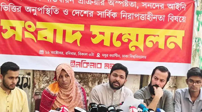 রোববার (১৯ অক্টোবর) বিকেলে ঢাকা বিশ্ববিদ্যালয় মধুর ক্যান্টিনে জুলাই সনদ বাস্তবায়ন প্রক্রিয়ার অস্পষ্টতা, সনদের আইনি ভিত্তির অনুপস্থিতি ও দেশের সার্বিক নিরাপত্তাহীনতা বিষয়ে ইনকিলাব মঞ্চ আয়োজিত সংবাদ সম্মেলনে তিনি এসব কথা বলেন।