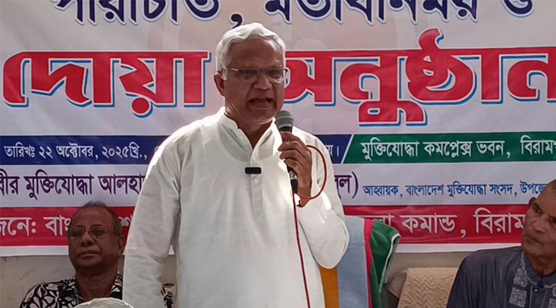 মঙ্গলবার (২২ অক্টোবর) দুপুরে দিনাজপুরের বিরামপুর মুক্তিযোদ্ধা কমপ্লেক্সে মুক্তিযোদ্ধা সংসদের নবগঠিত উপজেলা, পৌরসভা ও ইউনিয়ন কমিটির সদস্যদের পরিচিতি ও মতবিনিময় সভায় তিনি এসব কথা বলেন।