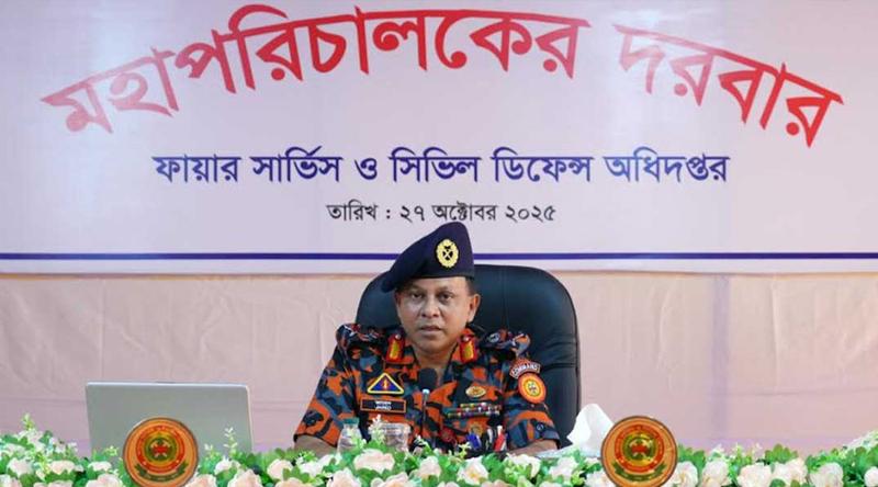 সোমবার (২৭ অক্টোবর) সকালে ফায়ার সার্ভিস ও সিভিল ডিফেন্স সদর দপ্তরে সব পর্যায়ের কর্মকর্তা-কর্মচারীদের নিয়ে আয়োজিত দরবার অনুষ্ঠানে এ আহ্বান জানান।