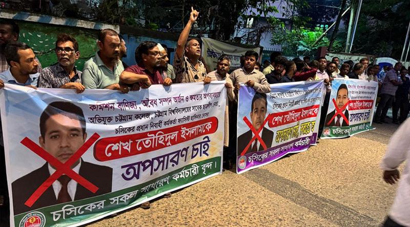চট্টগ্রাম সিটি করপোরেশনের (চসিক) প্রধান নির্বাহী কর্মকর্তা (সিইও) তৌহিদুল ইসলামকে অপসারণের দাবিতে করপোরেশনের প্রধান ফটকে তালা মেরে বিক্ষোভ মিছিল ও সমাবেশ করেছেন কর্মকর্তা-কর্মচারীরা। পরে ১৫ দিনের আলটিমেটাম এবং মেয়রের আশ্বাসে ফটকের গেট খুলে দেন তারা।