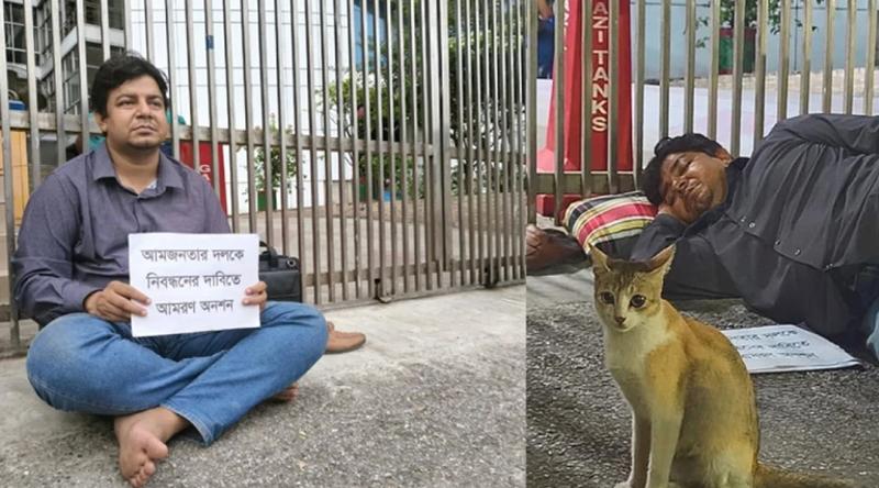 রাজনৈতিক দল হিসেবে ‘আম জনতার দল’ এর নিবন্ধন না হওয়ায় দলটির সদস্য সচিব তারেক রহমান দ্বিতীয় দিনের মতো নির্বাচন ভবনের সামনে আমরণ অনশন করছেন।