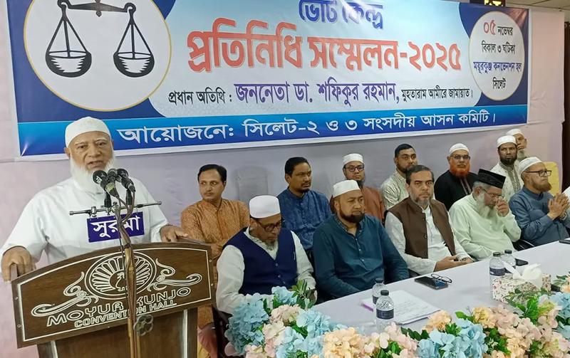 বুধবার (৫ নভেম্বর) সন্ধায় ৭টায় সিলেটের দক্ষিণ সুরমার একটি কমিউনিটি সেন্টারে আগামী নির্বাচনে সিলেট ২ ও ৩ আসনের জামায়াত দায়িত্বশীলদের নিয়ে অনুষ্ঠিত ভোট কেন্দ্র প্রতিনিধি সম্মেলনে প্রধান অতিথির বক্তব্যে তিনি এসব কথা বলেন।
