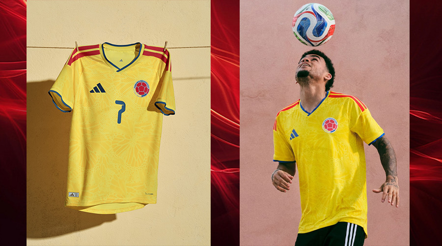 উজ্জ্বল হলুদ বেসে প্রজাপতির ছায়া-কলম্বিয়ার নতুন জার্সি গ্যাব্রিয়েল গার্সিয়া মার্কেসের সাহিত্যজগতের প্রতি শ্রদ্ধা নিবেদন। আশার প্রতীক হিসেবে প্রজাপতির ব্যবহার ফুটবলে এক নান্দনিক মাত্রা যোগ করেছে।