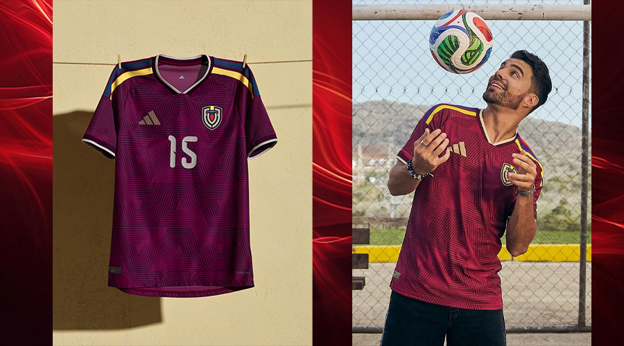 গাঢ় বারগান্ডি রঙের ওপর সোনালি ছোঁয়া, কাঁধে তিন রঙের স্ট্রাইপ-ভেনেজুয়েলার জার্সিকে বলা হচ্ছে “সবচেয়ে রুচিশীল ডিজাইন”। এক কথায় এটি ভিনোটিন্টোদের পরিপূর্ণ ফুটবল নান্দনিকতা।