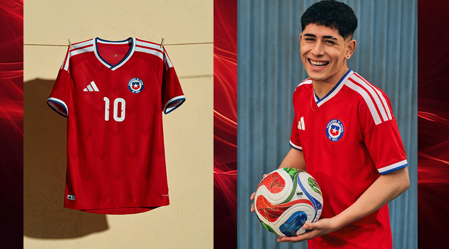 চিলির নতুন হোম জার্সি জাতীয় পরিচয়ের প্রতীক। লাল রঙের ঐতিহ্যবাহী ভিত্তিতে দেশের প্রতীকী পাখি ‘কনডর’-এর ডানার নকশা ছড়িয়ে আছে পুরো জার্সিজুড়ে, যা শক্তি ও গৌরবের প্রতিচ্ছবি। গলার পেছনে বিশেষ কনডর প্রতীক যুক্ত করে জার্সিটিকে দিয়েছে স্বকীয় পরিচয়-এটি নিঃসন্দেহে চিলিরই প্রতীক।
