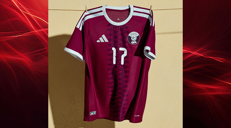 ২০২২ বিশ্বকাপের میزبان কাতারের জন্য আগামী টুর্নামেন্টে নতুন লুক। অ্যাডিডাস দেশের সমৃদ্ধ পরিচয়কে সম্মান জানিয়েছে। গভীর মেরুন বেসে দেশের পতাকার প্রেরণা, যেখানে আইকনিক জিগ-জ্যাগ ডিজাইনকে গাঢ় দাগের মাধ্যমে পুনর্নির্মাণ বোঝানো হয়েছে।