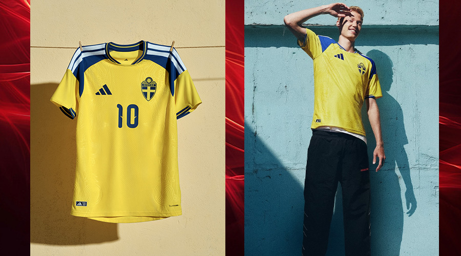 থ্রি স্ট্রাইপস সুইডেনের ক্লাসিক হলুদ ও নীল রঙকে ৭০-এর দশকের রেট্রো স্টাইলে নতুন রূপ দিয়েছে। জার্সির ফ্যাব্রিকে সূক্ষ্ম টোনাল গ্রাফিক ব্যবহার করা হয়েছে, যা ডেনিম এবং ঐতিহ্যবাহী সুইডিশ ফোক ড্রেসের ফুলের সেলাই থেকে অনুপ্রাণিত। শেষের দিকে, ‘Sverige’ লেখা আছে গলার পেছনে, আধুনিক টাইপোগ্রাফিতে-গর্বের পরিচয়।