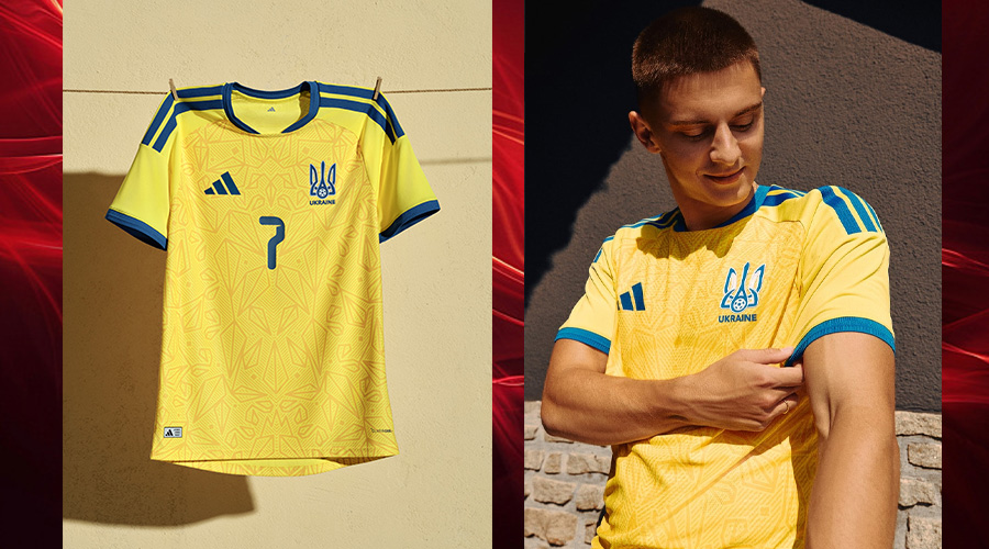 ইউক্রেনের হোম জার্সি দেশটির ঐতিহ্যকে গর্বের সঙ্গে শ্রদ্ধা জানায়, যেখানে আধুনিক পরিচয়কে ঐতিহ্যের সঙ্গে মেলানো হয়েছে। আইকনিক উজ্জ্বল হলুদ ও নীল রঙ আবার ফিরে এসেছে, গভীর হলুদ টোনের সূক্ষ্ম পুনরাবৃত্ত গ্রাফিক দিয়ে সমৃদ্ধ, যা ইউক্রেনের কোট অফ আর্মসের আকার ও প্রতীক থেকে অনুপ্রাণিত। একটি জার্সি যা দৃঢ়তা ও গর্বের প্রতীক।