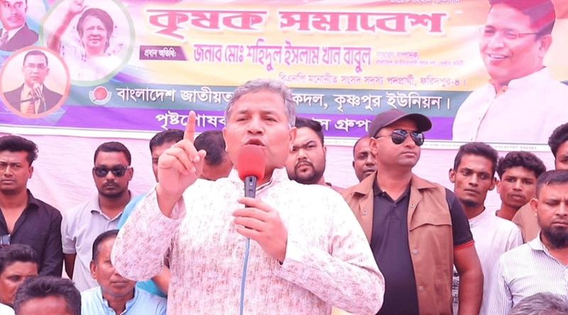 ফরিদপুর-৪ আসনের বিএনপি মনোনীত এমপি পদপ্রার্থী ও কেন্দ্রীয় কৃষক দলের সাধারণ সম্পাদক শহিদুল ইসলাম বাবুল বলেন, সরকার আসে, সরকার যায়—কৃষকের ভাগ্যের পরিবর্তন হয় না। একজন ছিল দরদি শহীদ জিয়াউর রহমান। দুর্ভিক্ষের দেশ ছিল ১৯৭৩, ৭৪ ও ৭৫ সালে। জিয়াউর রহমান ক্ষমতায় আসলেন, ধুমকেতুর মতো আসলেন, খাল কাটলেন।