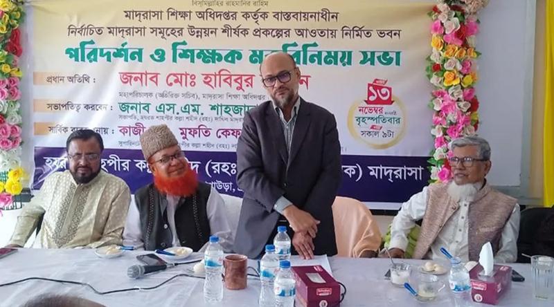 বাংলাদেশ মাদ্রাসা শিক্ষা অধিদপ্তরের মহাপরিচালক (অতিরিক্ত সচিব) মো. হাবিবুর রহমান বলেছেন, ছাত্র-ছাত্রীদের পাঠ্যবইয়ের পাশাপাশি ধর্মীয় ও নৈতিক শিক্ষা দিতে হবে। এ জন্য শিক্ষকদের আন্তরিকতার সঙ্গে পাঠদানের আহ্বান জানাই।