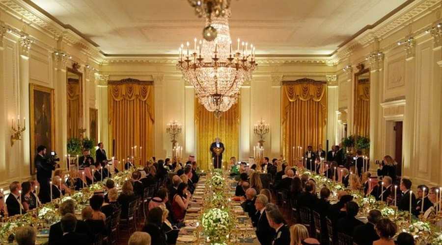 হোয়াইট হাউসে ‘ব্ল্যাক-টাই ডিনার’-এ দেখা গেল সুপারস্টার ফুটবলার ক্রিস্টিয়ানো রোনালদোকে। গতকাল মঙ্গলবার রাতের এ আয়োজনে মার্কিন প্রেসিডেন্ট ডোনাল্ড ট্রাম্পের নিমন্ত্রণে সৌদি যুবরাজের সঙ্গে অংশ নিয়েছিলেন এই ফুটবল তারকা।