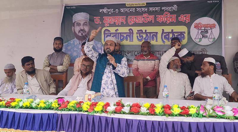 জামায়াতে ইসলামীর ঢাকা মহানগরী উত্তরের সেক্রেটারি ও লক্ষ্মীপুর-৩ (সদর) আসনে দাঁড়িপাল্লার প্রার্থী ড. মোহাম্মদ রেজাউল করিম বলেছেন, আমাদের দেশের এক শ্রেণির রাজনীতিবিদরা টিআর কাবিখার টাকা খায়। এসব ভিক্ষুকের টাকা, এমপি-মন্ত্রী টয়লেটের টাকাও খায়। এদের পদ যতই উন্নত হোক এরা হচ্ছে জাতির সবচেয়ে বড় ভিক্ষুক। এরা সবচেয়ে বড় কুলাঙ্গার, এরা সবচেয়ে বড় অসভ্য। যারা মানুষ হত্যা করে না শুধু, মানুষ হত্যা করে লাশকে পেট্রল দিয়ে পুড়িয়ে ফেলে। আমরা সেটা দেখেছিলাম। আমরা খুনখারাবির বাংলাদেশ দেখতে চাই না। চোখ রাঙানির বাংলাদেশ দেখতে চাই না।