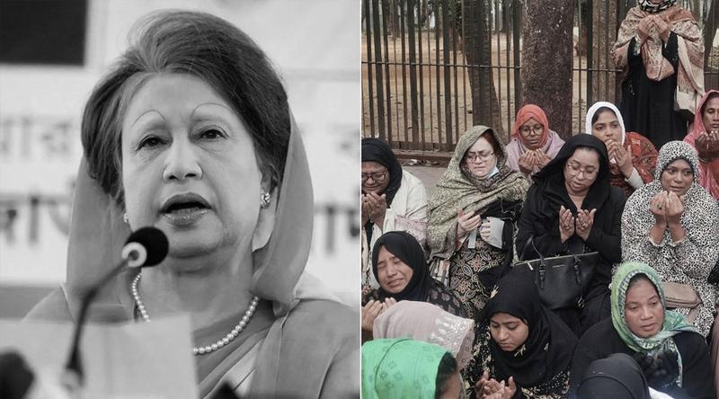 সরেজমিনে দেখা যায়, গুলশানে বিএনপির চেয়ারপারসনের কার্যালয়ের ঠিক উল্টো পাশে সারিবদ্ধ হয়ে বসেন নারী নেতাকর্মীরা। একপর্যায়ে খালেদা জিয়ার আত্মার মাগফেরাত মোনাজাত তুলে মহান আল্লাহর দরবারে প্রার্থনা করেন তারা। এ সময় কান্নায় ভেঙে পড়েন সবাই। এ সময় সাবেক এই প্রধানমন্ত্রীর স্মৃতিচারণ করে বেশিরভাগ নারীকেই দোয়া পড়তে শোনা যায়।