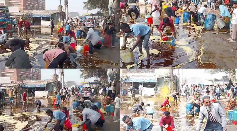 একপর্যায়ে রাস্তায় জমে থাকা তেল সংগ্রহ করতে বালতি, ড্রামসহ বিভিন্ন পাত্র নিয়ে লোকজন ছুটে আসে। পরিস্থিতি নিয়ন্ত্রণের বাইরে যেতে থাকলে দ্রুত তেল সরবরাহের লাইন বন্ধ করে দেওয়া হয়।