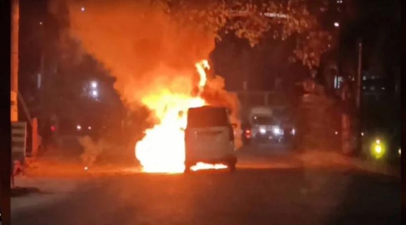 রাজধানীর কাকরাইলে চলন্ত মাইক্রোবাসে আগুন