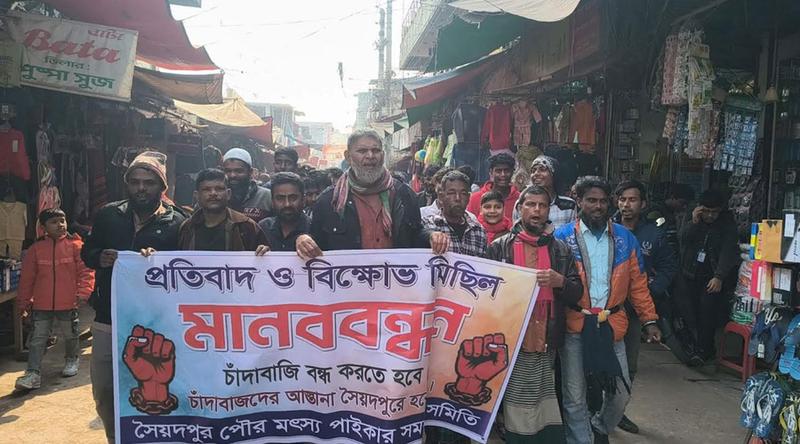 নীলফামারীর সৈয়দপুরে চাঁদাবাজির প্রতিবাদে তিন দিন ধরে মাছের বাজার বন্ধ রেখেছেন ব্যবসায়ীরা। এতে দুর্ভোগে পড়েছেন দূর-দূরান্তের ব্যবসায়ী ও ক্রেতারা।