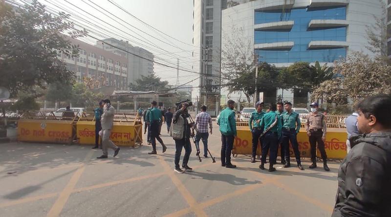 এছাড়া মূল ভবনের সামনেই ব্যারিকেড দিয়ে চলাচল সীমিত করা হয়েছে। সেখানে অতিরিক্ত পুলিশ সদস্য মোতায়েন রয়েছে। যারা ভেতরে প্রবেশ করতে চাইছেন, সবার কাছেই প্রবেশের কারণ জানতে চাওয়া হচ্ছে। প্রাথমিক যাচাই শেষে ভেতরে প্রবেশের অনুমতি মিললেও অস্থায়ী অপেক্ষারতদের বুথ থেকে অডিটোরিয়ামে যেতে আরও দুই ধাপের নিরাপত্তা বলয় অতিক্রম করতে হচ্ছে।