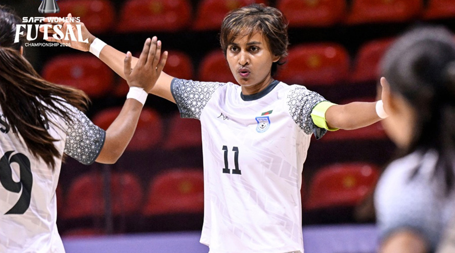দক্ষিণ এশিয়ান ফুটবল ফেডারেশন (সাফ) প্রথমবারের মতো নারী ও পুরুষ ফুটসাল টুর্নামেন্ট আয়োজন করছে। অভিষেক আসরেই বাংলাদেশ নারী ফুটসাল দল চ্যাম্পিয়ন হয়েছে। আজ (রোববার) নিজেদের শেষ ম্যাচে ১৪-২ গোলে উড়িয়ে দিয়েছে মালদ্বীপকে। ছয় ম্যাচে সাবিনা খাতুনদের পয়েন্ট ১৬। সাত দেশের মধ্যে সর্বোচ্চ পয়েন্ট পেয়ে বাংলাদেশেয়ের মেয়েরা চ্যাম্পিয়ন হয়েছে।