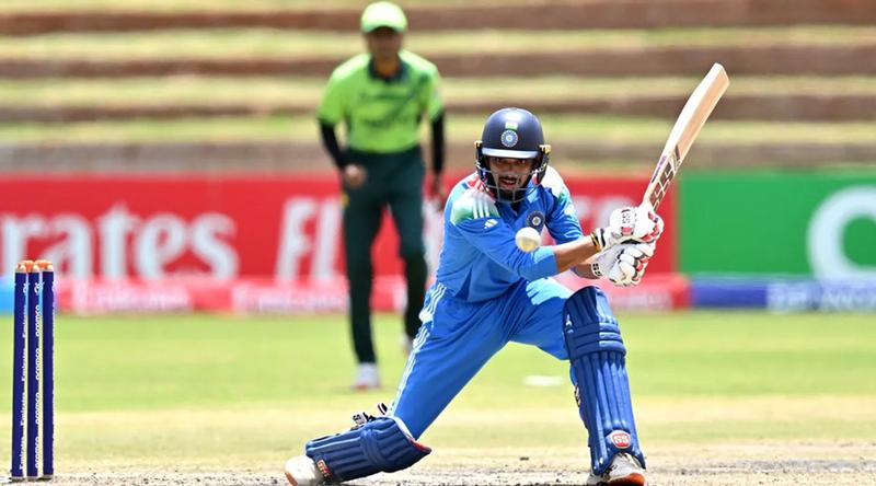 বুলাওয়েতে অনুষ্ঠিত ম্যাচের শুরুতে টস জিতে ভারতকে ব্যাট করার আমন্ত্রণ জানান পাকিস্তানের অধিনায়ক ফারহান ইউসুফ। ব্যাট করতে নেমে উদ্বোধনী জুটিতে আসে ৪৭ রান। ১৬ রান করে আউট হন ভারতীয় ওপেনার অ্যারন জর্জ। পরের উইকেটে নেমে রানের দেখা পাননি দলনেতা আয়ুশ মাত্রে। আরেক ওপেনার বৈভব সূর্যবংশী করেন ৩০ রান।