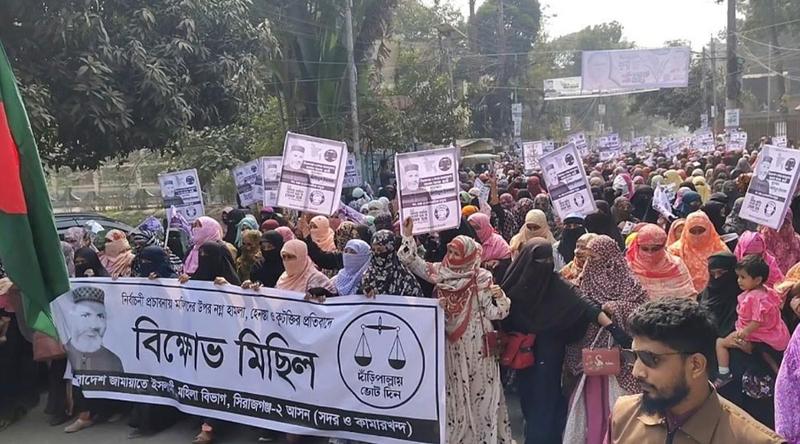 নির্বাচনী প্রচারণার সময় মহিলাদের ওপর নগ্ন হামলা, হেনস্তা ও কটুক্তির প্রতিবাদে মহিলা জামায়াতের নারীদের অংশগ্রহণে সিরাজগঞ্জে বিক্ষোভ মিছিল অনুষ্ঠিত হয়েছে।