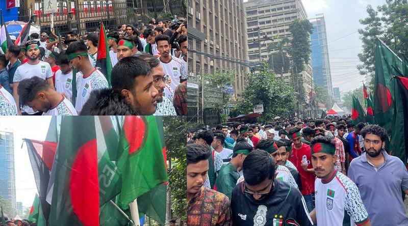 মঙ্গলবার (১০ জুন) জাতীয় স্টেডিয়াম এবং গুলিস্তান মোড় সংলগ্ন এলাকায় দেখা যায় এমন চিত্র। সকাল থেকেই ভিড় করতে থাকেন ফুটবল ভক্তরা।